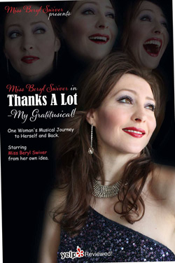 You're welcome. Beryl Swiver returns to the small stage for a limited run of her award-winning Hollywood Fringe fit. Be appalled. It's amazing.
